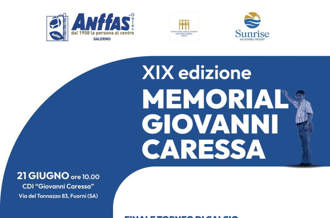 Il Memorial G. Caressa, sarà preceduto da una giornata di sport e divertimento, mercoledì 21 giugno alle ore 10  presso il CDI G. Caressa di Fuorni per la conclusione del torneo di calcio a 5, un triangolare di calcio tra la squadra della Fondazione Anffas Salerno Giovanni Caressa e i centri di riabilitazione Nuovo Elaion e Tivan che si chiuderà con la finale, la premiazione delle squadre e l’assegnazione delle targhe ai premi allo sport,  dopo aver disputato partite emozionanti, competizioni leali e l’opportunità di mostrare il meglio di sé sul campo con grinta e determinazione.